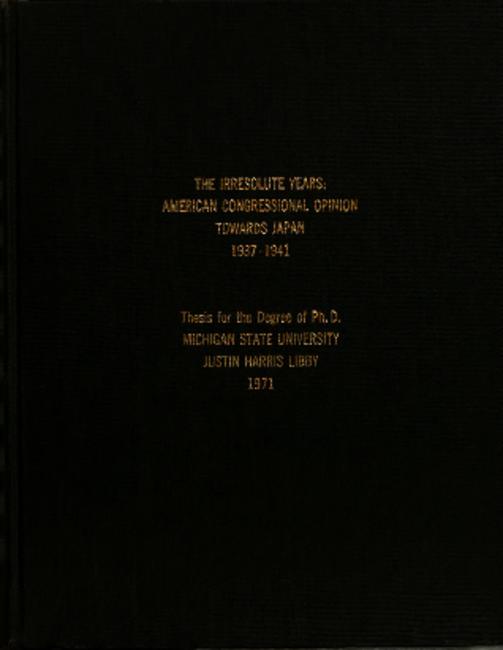 The irresolute years : American congressional opinion towards Japan 1937-1941