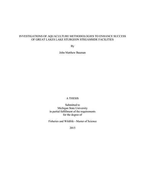 Investigations of aquaculture methodologies to enhance success of Great Lakes lake sturgeon streamside facilities