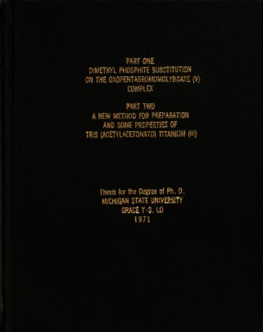 Part one: Dimethyl phosphite substitution on the oxopentabromolybdate (V) complex. Part two: A new method for preparation and some properties of tris(acetylacetonato) titanaium (III)