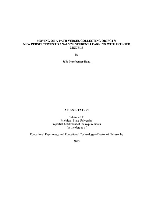 Most mathematics beyond middle school requires that students operate with all real numbers, both positive and negative quantities. Later mathematics (e.g., linear and quadratic equations, coordinate graphing, absolute value equations, transformations, and matrices) and science topics (e.g., vectors, sound waves, and charged particles) all require use of negative numbers. Yet, some of the identified difficulties students have with more advanced studies, such as algebra, are due to difficulties with negative number arithmetic and notation (Vlassis, 2008).With the intent to help students overcome these difficulties, multiple instructional models are promoted in school textbooks and teacher resources. Multiple models are used although little is known about what students learn with these models. Different integer instructional models have different implications for learning mathematics, because they draw on different conceptual metaphors and students physically move their bodies in different ways to enact these models. In light of conceptual metaphor theory, the difficulties students have had with negative numbers and even those of mathematicians in history (Hefendehl-Hebeker, 1991), reveal that the collecting objects metaphor may be a cognitive obstacle to those first learning negative number arithmetic. Moreover, consistency of humans’ physical motions with targeted ideas is a factor of cognition, so the influence of students’ physical movements on their learning may be a critical, yet underexplored factor.In order to compare how these model differences influence learning, this study randomly assigned eight classes of initial learners to a specific collecting-objects (chip model) or moving-on-a-path metaphor-based model (number line model) to learn integer arithmetic with the four primary operations (addition, subtraction, multiplication, and division). This dissertation presents the main results of this pre-post-delayed posttest study to answer the questions: (a) With respect to ordering numbers and integer arithmetic, what do students demonstrate learning by enacting each model and what, if any differences in learning are found between models? (b) What meanings do students express for “-” symbols (negative signs, subtraction signs, or opposite signs) and how does the integer model used influence these meanings? Findings indicated that either instructional model did support significant learning gains for integer arithmetic and qualitative expression of basic “-” symbol meanings. These findings, moreover, did support theory that a motion-aligned model using a moving-on-a-path metaphor (walk-it-off number line model) was a better first model, because it supported initial integer learning better than a collecting objects metaphor based model both for integer arithmetic learning and opposite meanings of “-.”