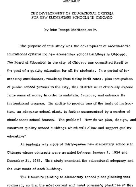 The development of educational criteria for new elementary schools in Chicago