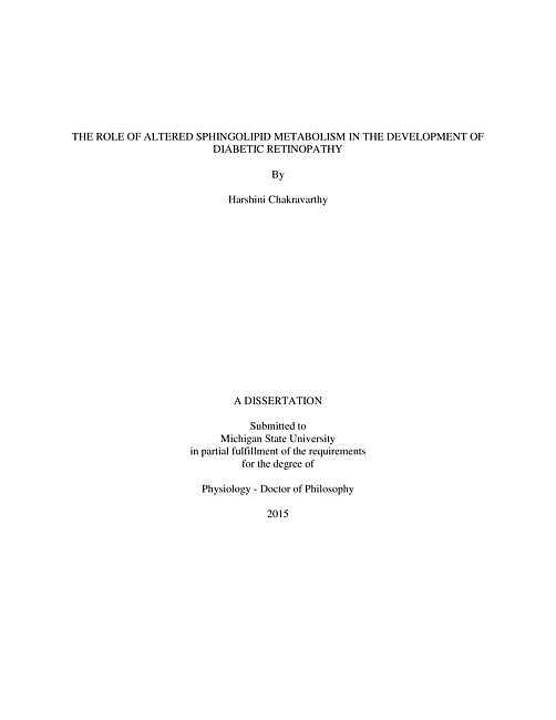 The role of altered sphingolipid metabolism in the development of diabetic retinopathy