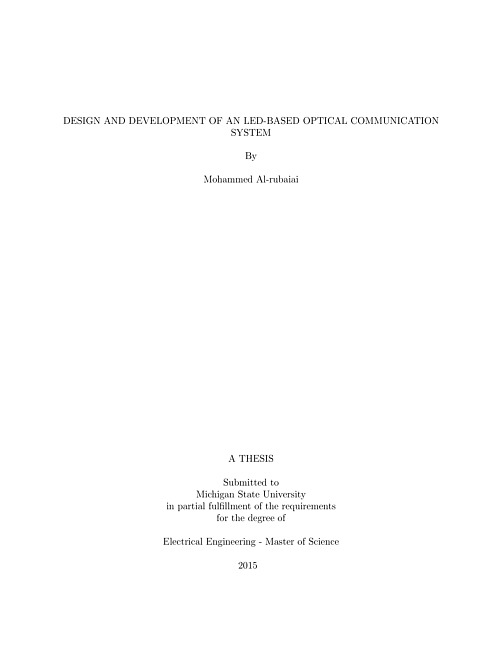 Strong attenuation of most electromagnetic signals in water is the main reason why underwater exploration, surveillance, and other applications currently rely on sub-sea cables and tethers to send data back to the user. While acoustic modems have long been the default wireless communication method for underwater applications, they incur high cost and can only deliver low data rates. In this work, an LED-based optical communication system is presented for applications requiring high data rates, low power, low complexity, and low-to-median communication range. An LED-based communication system, consisting of a transmitter with a super-bright blue LED and a receiver based on a blue-enhanced photo diode, has been developed and tested with the goal of transmitting data at high rates over distances of at least 20 meters. Test results in a swimming pool show the successful transmission of large data over a distance of 23 meters and at transmission rates of 115200 kbps. This system relies on a line-of-sight connection for communication. Since the change of the relative position and orientation between the transmitter and the receiver will affect the quality of communication link, a mechanism is designed so that the transmitter/receiver modules can be rotated to maintain alignment between the communicating parties, despite the movement of underlying platforms (e.g., robots). A signal strength-based feedback control algorithm is developed to maintain alignment. Experimental results involving a stationary transmitter and a mobile receiver mounted on a terrestrial robot are presented to evaluate the performance of the system.