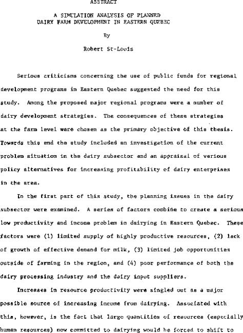 A simulation analysis of planned dairy farm development in Eastern Quebec