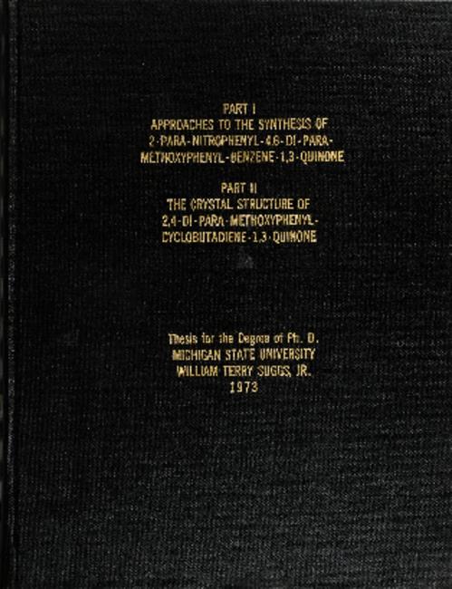 Part I: approaches to the synthesis of 2-paranitrophenyl-4,6-di-para-methoxyphenyl-benzene-1,3-quinone. Part II: the crystal structure of 2,4-di-para-methoxyphenyl-cyclobutadiene-1,3-quinone