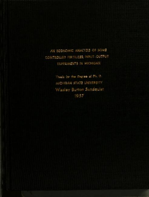 An economic analysis of some controlled fertilizer input-output experiments in Michigan