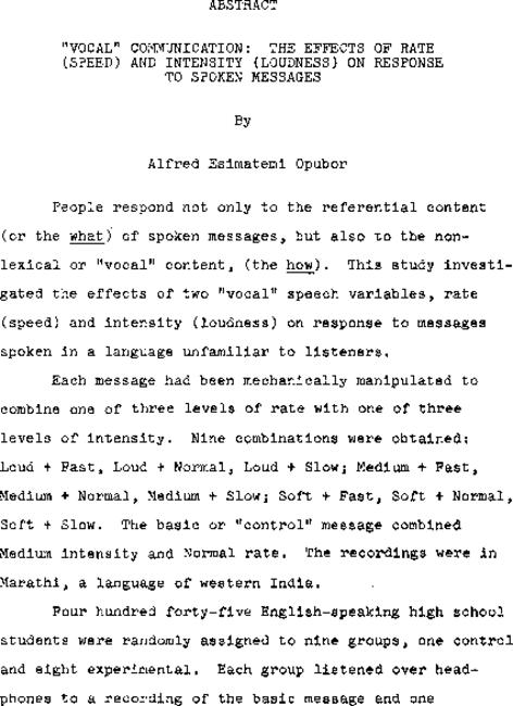 "Vocal" communication : the effects of rate (speed) and intensity (loudness) in response to spoken messages