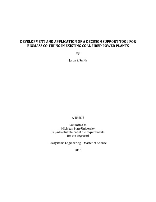Biomass co-firing has the potential to be a low cost source of renewable energy that can utilize the existing infrastructure of existing coal fired power plants, while reducing the overall environmental impact of the existing systems. Though there are technical barriers to the development of co-firing systems, there is a growing need to utilize biomass resources in renewable energy production and several systems have shown the ability to do so successfully. In moving forward, project developers need tools to identify potential technical, economic or logistical issues when planning the development of such systems. The purpose of this study is to use the aggregated information regarding various combustion technologies, pre-treatment technologies and available biomass feedstocks to generate a decision support tool for energy providers that will help identify economic, environmental and social impacts of developing site specific biomass co-firing projects at existing coal fired power plants. This decision support tool will then be utilized to examine existing power plant and biomass data to generate a site specific case study in the state of Michigan.
