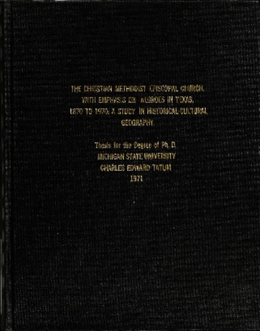The Christian Methodist Episcopal Church, with emphasis on negroes in Texas, 1870 to 1970 : a study in historical-cultural geography