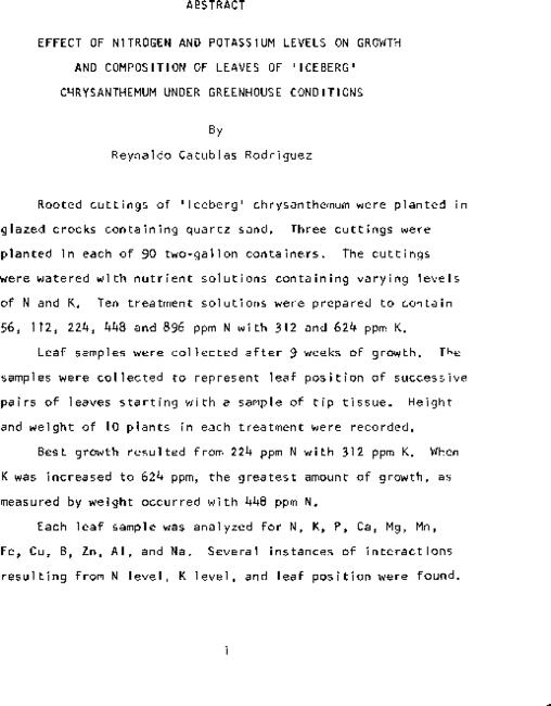 Effect of nitrogen and potassium levels on growth and compostitin of leaves of 'iceberg' chrysanthemum under greenhouse conditions