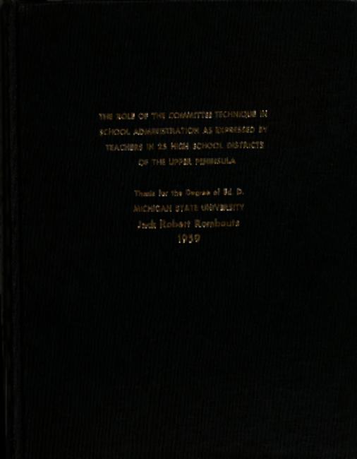 The role of the committee technique in school administration as expressed by teachers in 25 high school districts of the Upper Peninsula