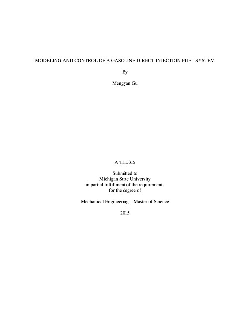 Fuel economy and emissions are the two main concerns to many automobile engineers. The Gasoline Direct Injection (GDI) fuel systems are widely used in internal combustion engines to improve fuel economy with reduced emissions.This study focuses on the development of a MotoTron based fuel rail pressure control system. This work is motivated by the need for maintaining higher fuel rail pressure for improved fuel injection accuracy. The developed fuel rail control system consists of a MotoTron control module, a customized actuator drive box, and a host computer with LabVIEW GUI (graphic user interface) and the MotoTune calibration tool for MotoTron. The MotoTron and the host computer communicate through CAN (control area network). A mathematical model of the fuel rail control system was developed using MATLAB/Simulink. The pressure controller for the fuel system contains three parts: a bumpless and anti-windup PI (proportional and integral) controller, a feed-forward controller, and a dead-zone compensator. The closed-loop control was simulated and validated in Simulink using the developed model, where the fuel injection process was also considered. The simulation results of tracking the desired pressure were compared with the experiment data. The comparison with the Simulink simulation results and experiment data shows that the Simulink model is able to reflect the characteristics of the actual fuel rail system; and the experiment data show that the closed-loop controller is able to maintain the fuel system pressure at the desired level.