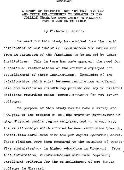 A study of selected institutional factors and their relationship to breadth of the college transfer curriculum in Missouri public junior colleges