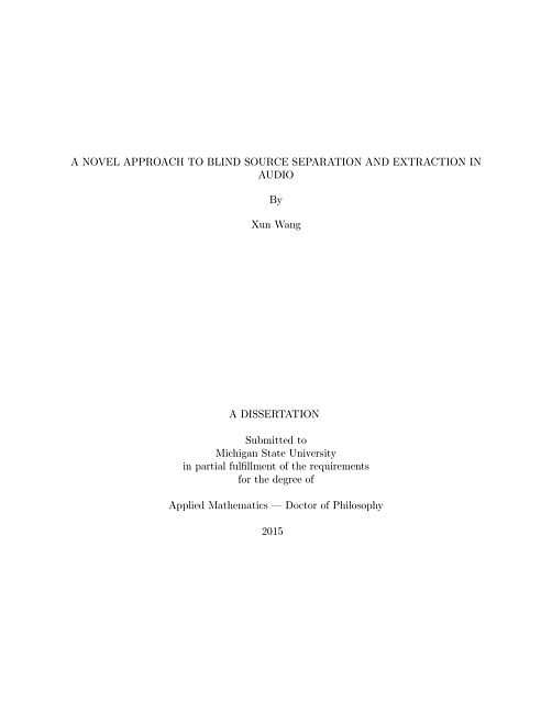 In this thesis, the blind source separation (BSS) on digitalaudio signals via background learning by several differentmethodologies is carefully studied. In the daily auditory, acoustic audio signals are usually mixtures of different sources, including foreground andbackground noises. Most of the time, we only want to receive the foregroundsources and get rid of the background ones. Because of the randomness ofvarious situations, it is very difficult to perform this separation without knowing the detailed information. Even if the background noises are not dominating the foreground sources, or even much weaker, it is still a difficult problem, especially for the case that there are more than three sources including the noise. This also makes it even more difficult to separate different sources from mixed signals. In this thesis, a novel approach to solve cancellation kernels is provided by using a modified sigular value decomposition method. The main focus is to use this new technique to estimate the cacellation kernels with good results in short computational time.In this work, some background information for blind source separation of audio will be first introduced. Next, the knowledge of four different methods for solving this type of problems is mentioned. Split Bregman has been studied by others in solving cancellation kernels for the separation of speech signals. We apply proximity operator method to solve the cancellation kernels for BSS of audio signal processing. It has been applied to study image processing by other researchers. Quadratic programming method has been applied to solve cancellation kernels by Wang and Zhou. We provide a new approach to bring sparseness to cancellation kernels by using quadratic programming. We developed a modified singular value decomposition (SVD) algorithm based on the numerical experiments. It is a new technique to estimate cancellation kernels for BSS of audio signals. The detailed information and schemes are presented in Chapter 3. Then, in the fouth chapter, there are different numerical simulation examples according to different scenarios. We compare the results of our modified SVD method with others methods, and conclude that our modified SVD is the best approach.