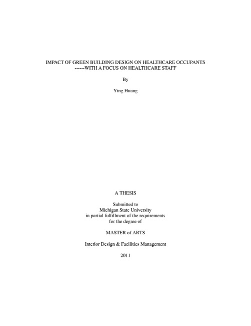 Impact of green building design on healthcare occupants---with a focus on healthcare staff