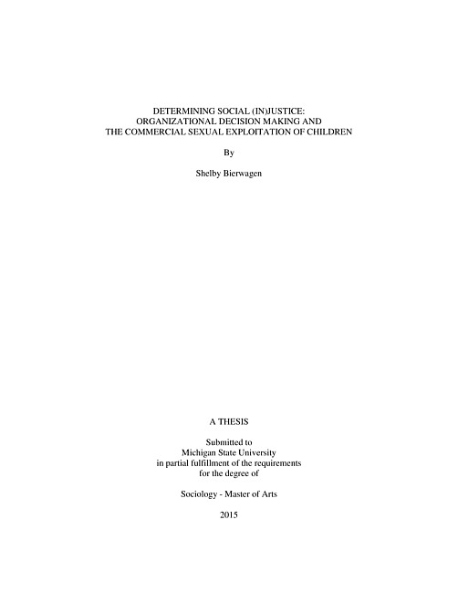 Determining social (in)justice : organizational decision making and the commercial sexual exploitation of children