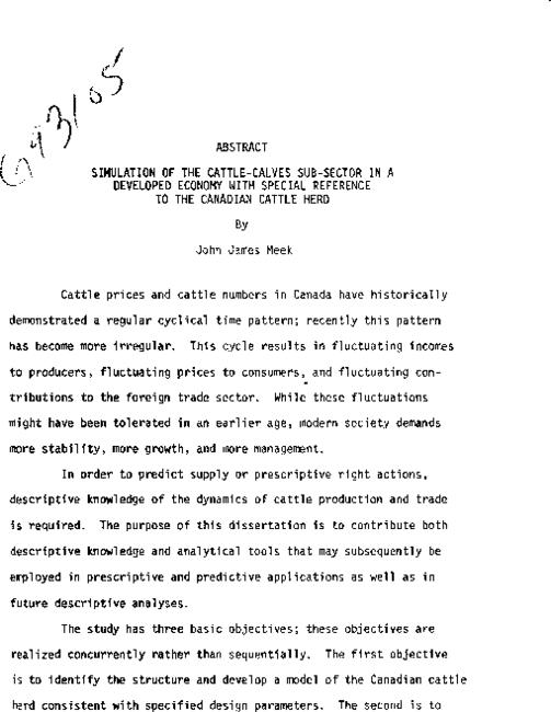 Simulation of the cattle-calves sub-sector in a developed economy with special reference to the Canadian cattle herd