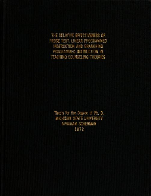 The effectiveness of prose text, linear programmed instruction and branching programmed instruction in teaching counseling theories