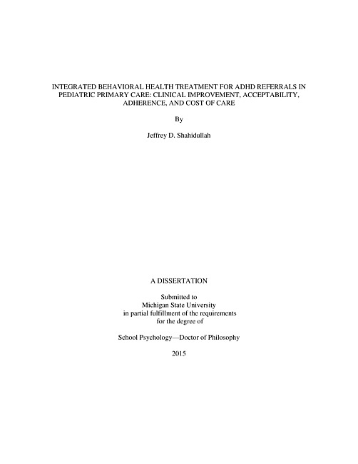 Integrated behavioral health treatment for ADHD referrals in pediatric primary care : clinical improvement, acceptability, adherence, and cost of care