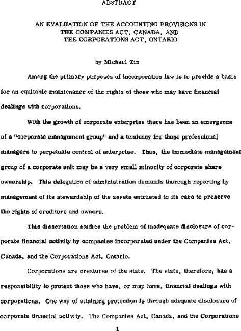 An evaluation of the accounting provisions in the Companies Act, Canada, and the Corporations Act, Ontario