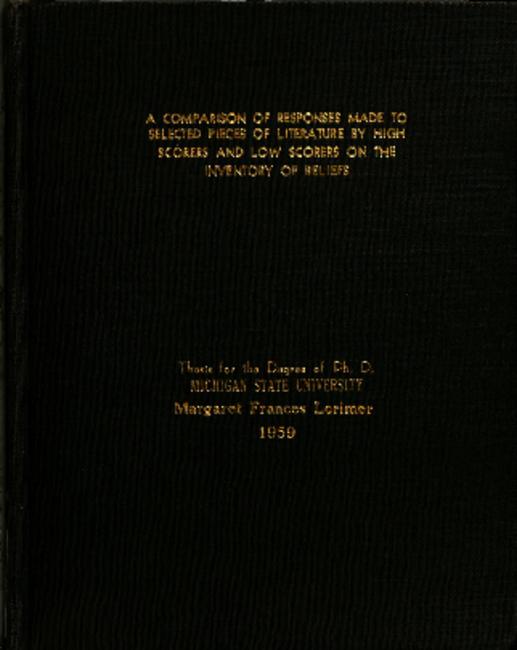 A comparison of responses made to selected pieces of literature by high scorers and low scorers on the inventory of beliefs