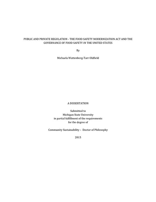 Public and private regulation : the Food Safety Modernization Act and the governance of food safety in the United States