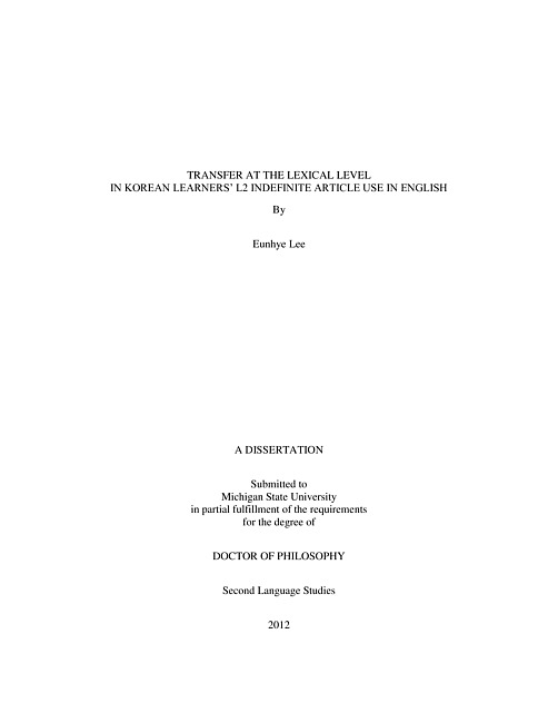 Transfer at the lexical level in Korean learners' L2 indefinite article use in English