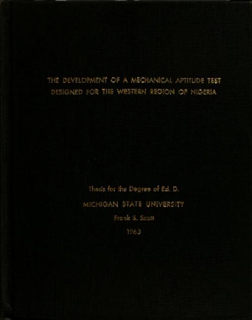 The development of a mechanical aptitude test designed for the western region of Nigeria