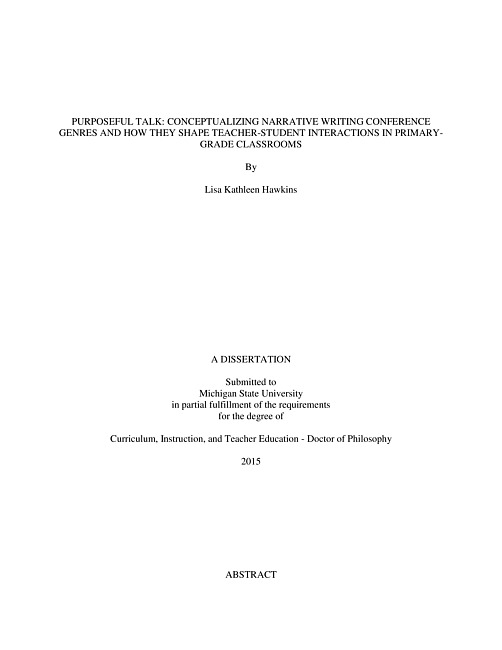Purposeful talk : conceptualizing narrative writing conference genres and how they shape teacher-student interactions in primary-grade classrooms