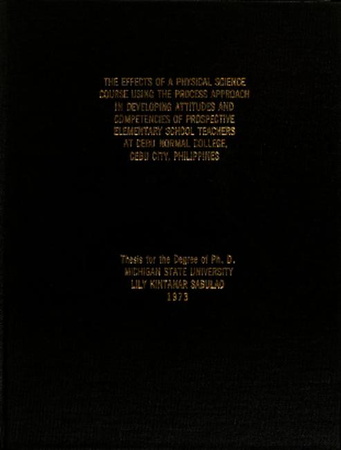 The effects of a physical science course using the process approach in developing attitudes and competencies of prospective elementary school teachers a Cebu Normal College, Cebu City, Philippines