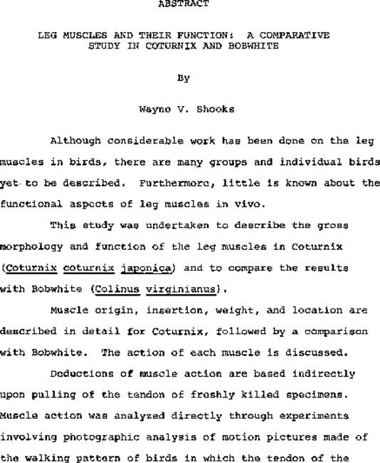 Leg muscles and their function : a comparative study in Coturnix and Bobwhite
