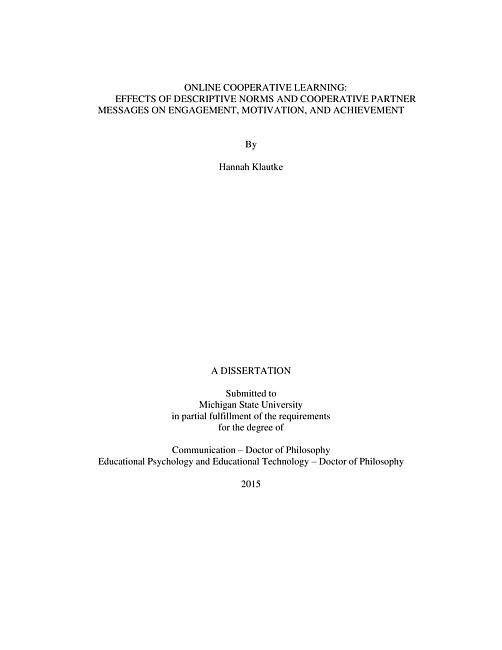 Online cooperative learning : effects of descriptive norms and cooperative partner messages on engagement, motivation, and achievement
