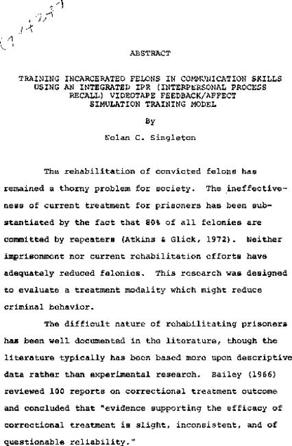 Training incarcerated felons in communication skills using an integrated IPR (Interpersonal Process Recall) Videotape Feedback/Affect Simulation training model