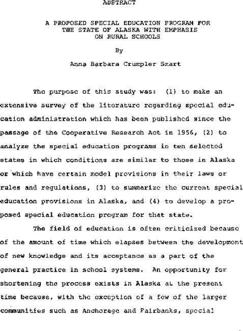 A proposed special education program for the state of Alaska with emphasis on rural schools