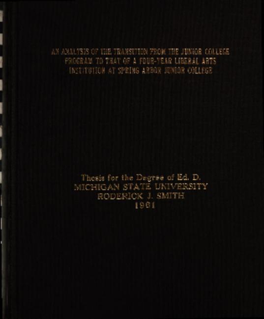 An analysis of the transition from the junior college program to that of a four-year liberal arts institution at Spring Arbor Junior College