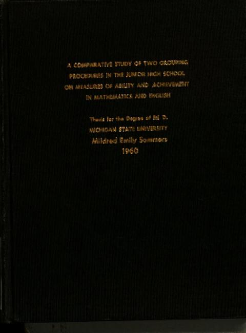 A comparative study of two grouping procedures in the junior high school on measures of ability and achievement in mathematics and English