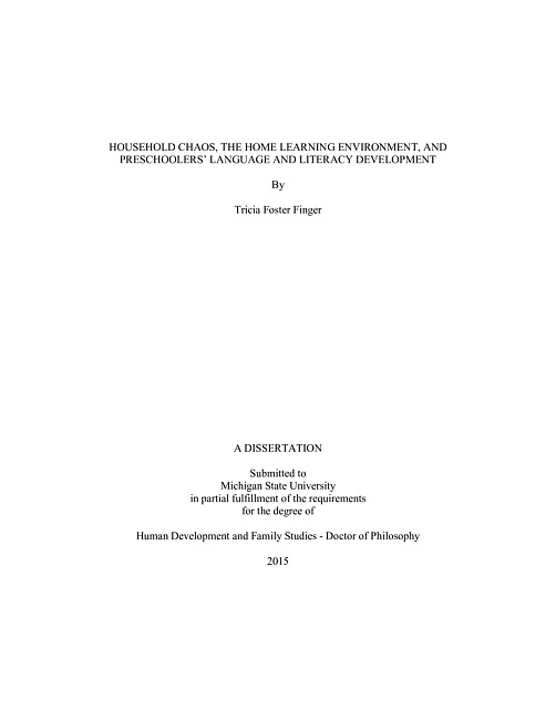 This dissertation considers home influences on preschool children’s early development in language and literacy, core competencies in the transition to formal schooling, within an ecological systems framework. In Study One, I examine associations between the contextual feature of household chaos and children’s outcomes, testing for direct links, as well as indirect links through the learning activities parents provide via the home learning environment (HLE). In Study Two, I make specific practical recommendations for families and those who work with families based on my findings from Study One, also drawing from the broader field of research and theory on household chaos and children’s development. In Study One, I examine household chaos in the lives of preschoolers and their families. Household chaos has been negatively associated with a variety of parenting behaviors and children’s developmental outcomes, but little is known about how it relates to the home learning environment (HLE) or to children’s language and literacy outcomes once the HLE is accounted for. Using a diverse sample of 342 preschoolers ranging in age from 34 months to 67 months and their parents, I test whether parent reported household chaos is related to children’s early language and literacy outcomes both directly, and indirectly through its influence on parental provision of the HLE. Results using mediation analysis within a structural equation modeling (SEM) format indicate that household chaos is indirectly related to children’s language and literacy outcomes through the HLE. Additionally, there is a direct effect of household chaos on children’s language skills for those families not in poverty. Future directions for research on household chaos are discussed, along with practical implications for working with children and families, which are expanded upon in Study Two. In Study Two, I underscore the importance of creating environments that promote children’s learning and engagement, with a discussion about practical ways that families can reduce overall levels of household chaos. Specifically, this paper reviews findings from Study One, and, together with the larger body of work on environmental chaos, makes practical recommendations for ways that practitioners can support families in increasing the degree of order and organization in the home while limiting noise and instability. Consistent with other work, Study One suggests that specific elements of household chaos, such as the presence of the television and participation in family routines may be particularly important for family functioning. Basing recommendations for practitioners on the current study findings along with the field at large, this paper focuses on three areas known to be important indicators of household chaos as they relate to child and family functioning: the presence of the television in the home, the occurrence of family routines, and the degree of order and organization in the home. Study One helps to provide insight into the ways that household chaos contributes to parent-child interactions around learning, and to children’s language and literacy development in particular. Building on these findings, Study Two delves deeper into the literature on specific elements of household chaos, providing practical strategies that families can employ to reduce the harmful effects of television usage, and capitalize on the positive influences of family routines and orderly learning spaces.