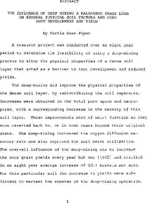 The influence of deep mixing a Kalamazoo sandy loam on several physical soil factors and corn root development and yield