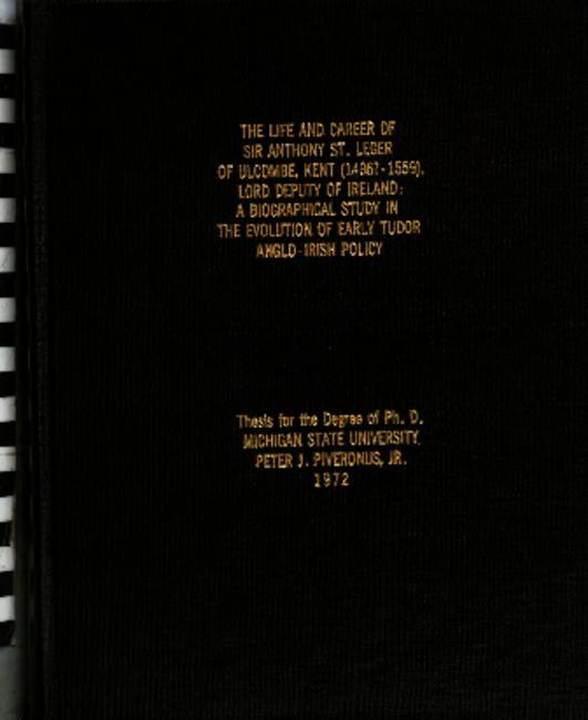 The life and career of Sir Anthony St. Leger of Ulcombe, Kent (1496?-1559), Lord Deputy of Ireland : a biographical study in the evolution of early Tudor Anglo-Irish policy