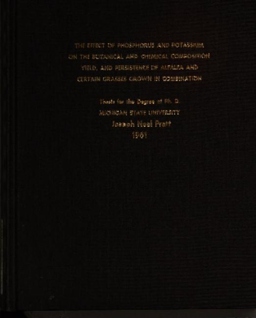 The effect of phosphorus and potassium on the botanical and chemical composition, yield, and persistence of alfalfa and certain grasses grown in combination