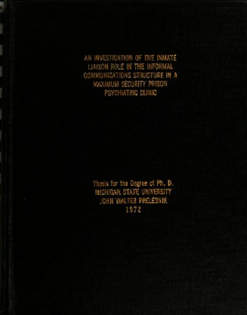 An investigation of the inmate liaison role in the informal communications structure in a maximum security prison psychiatric clinic