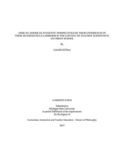 African American students' perspectives on their experiences in their mathematics classroom in the context of teacher turnover in an urban school