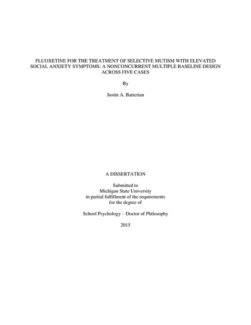 Fluoxetine for the treatment of selective mutism with elevated social anxiety symptoms : a nonconcurrent multiple baseline design across five cases
