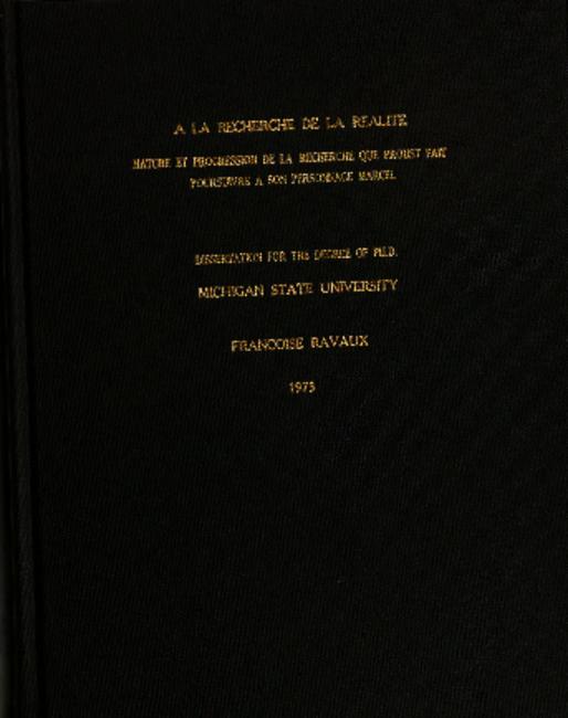 A la recherche de la realité. Nature et progression de la recherche que Proust fait poursuivre à son personnage Marcel