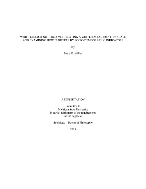 White like (or not like) me : creating a white racial identity scale and examining how it differs by socio-demographic indicators