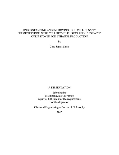 Understanding and improving high cell density fermentations with cell recycle using AFEX(TM) treated corn stover for ethanol production