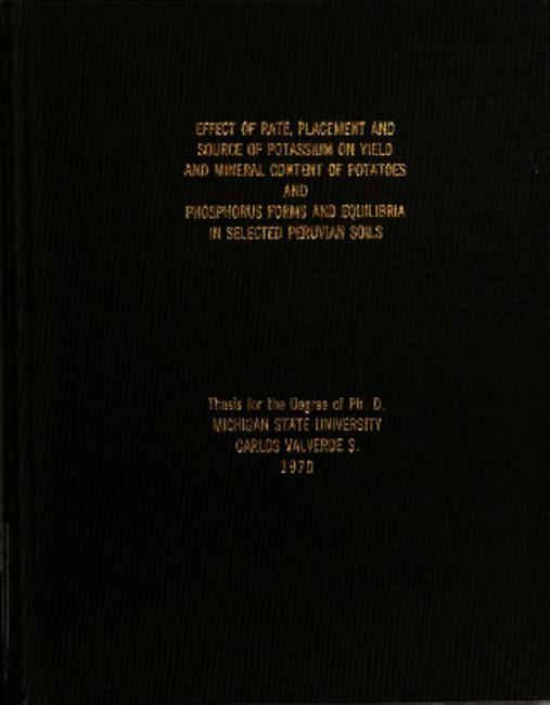 Effect of rate, placement and source of potassium on yield and mineral content of potatoes and phosphorus forms and equilibria in selected Peruvian soils
