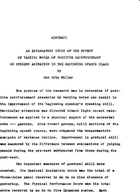 An exploratory study of the effect of varying modes of positive reinforcement on student animation in the beginning speech class