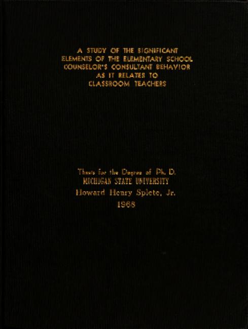 A study of the significant elements of the elementary school counselor's consultant behavior as it relates to classroom teachers