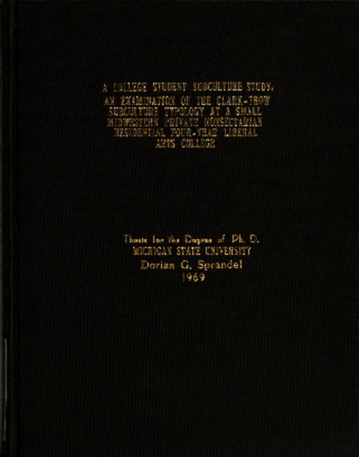 A college student subculture study : an examination of the Clark-Trow subculture typology at a small midwestern private nonsectarian residential four-year liberal arts college